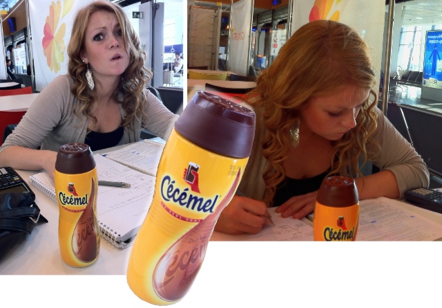 Så det blev kaffe och läxböcker för oss båda i väntan på flyget hem.