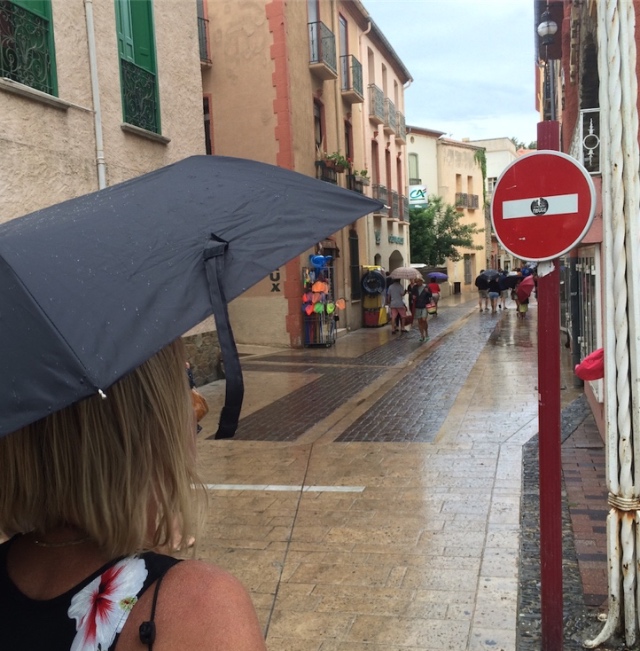 Regnet fortsatte och vi med. Vi kom till en liten urcharmig by, Collioure. För mycket folk, för få parkeringsplatser och för tidigt för middag så vi körde vidare men bestämde att åka tillbaka.