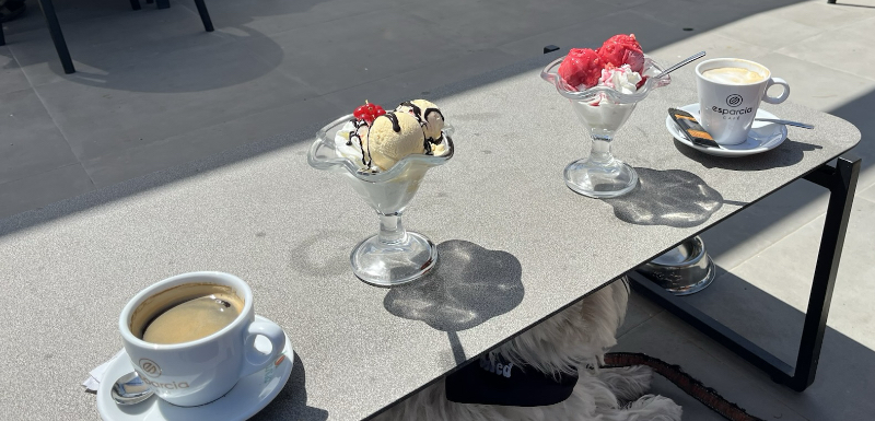 Vi åkte ner till golfbanan och fikade glass och kaffe. Det var gott