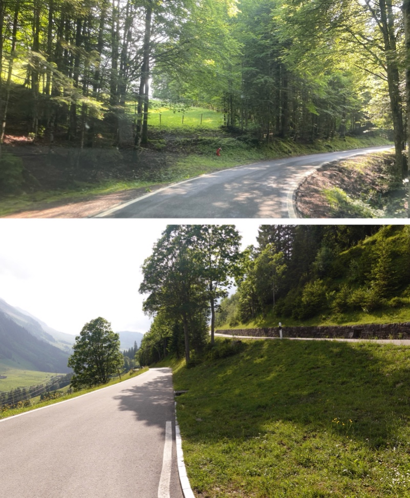 Vägen slingrade sig brant uppför, den var så smal att det inte gick att mötas utom på mötesplatserna. Någon skyddsmur eller stålräcke fanns inte utom just på broarna över de forsande bäckarna. Brant stupade gräsmattan ner från vägen utan vägren.