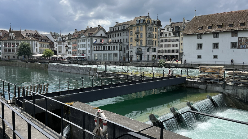 Vackert vart ögat såg. Luzern var en gammal stad med ringmur inbäddad mellan de pampiga husen. Man fick känsla av Genève med det gröna vattnet. Det fanns många parkeringshus med höjd på 2,10 och några få med höjd på 2,30.Vägarna runt Luzern slingrade sig upp för branterna och skidområden fanns det gott om. Bra Ställplatser var det värre med. På de flesta ställen är det förbjudet att stå mellan 22-06. |