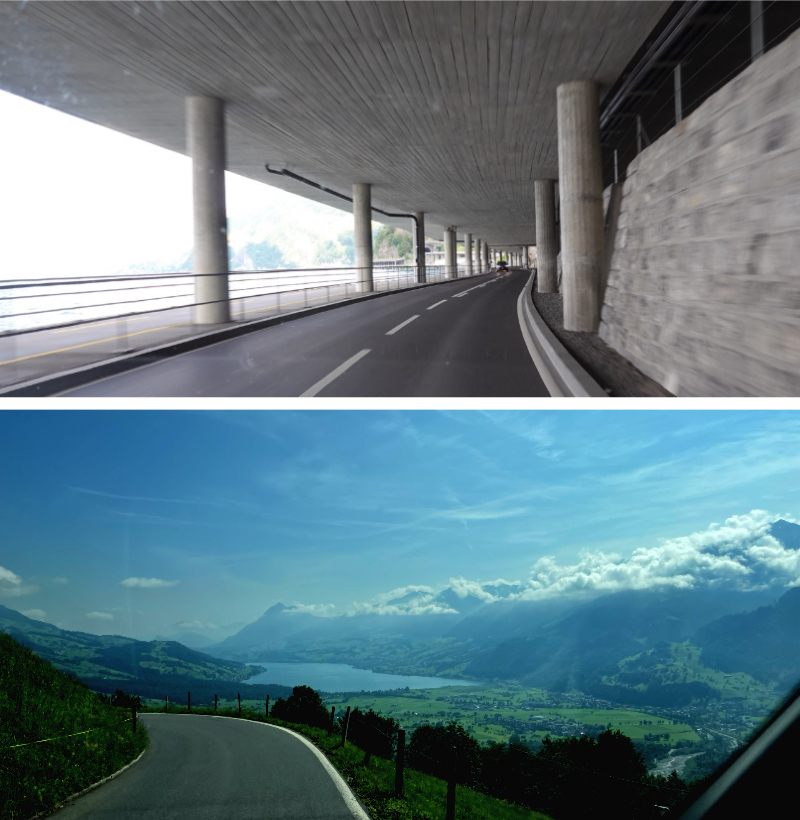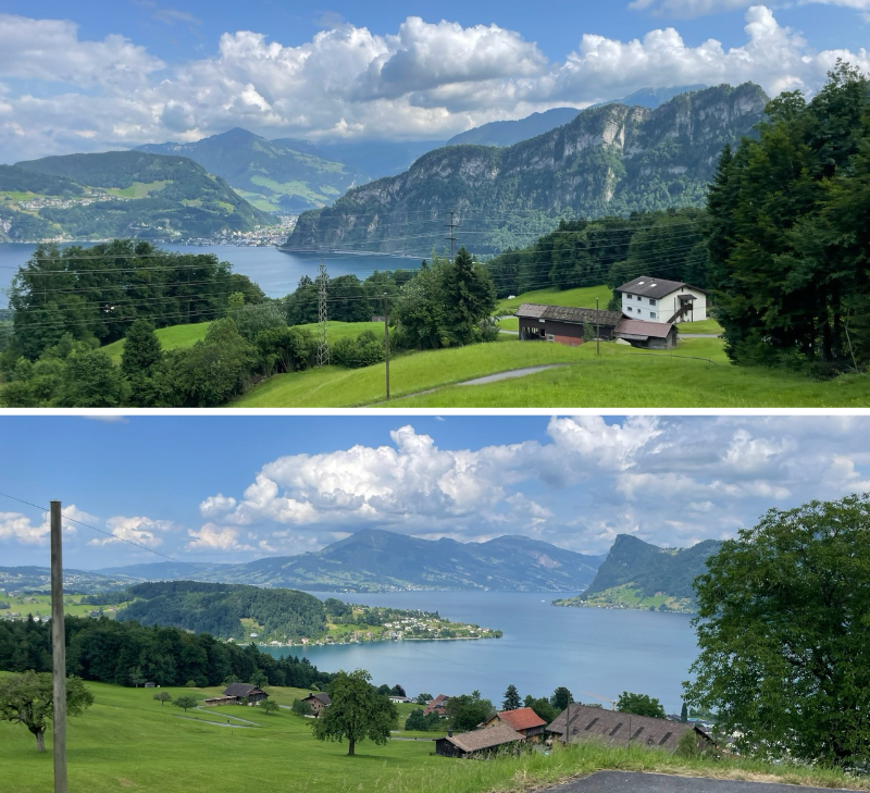 Så körde vi österut längs sjön Vierwaldstettersee, grönt vatten