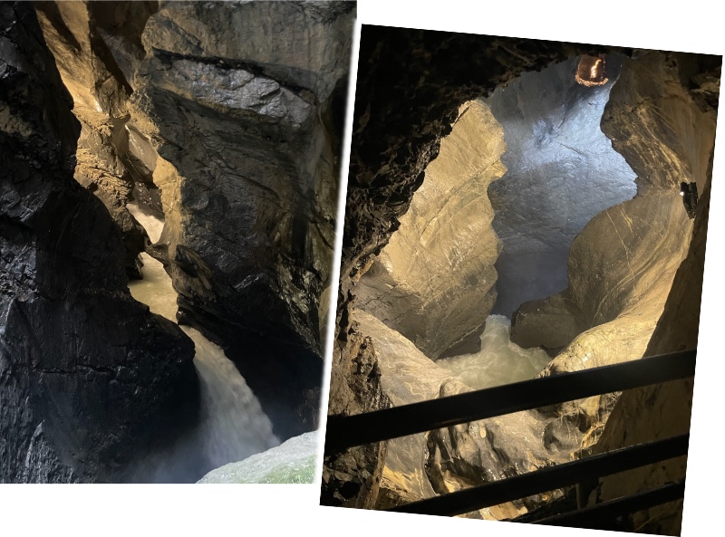Inträdet till Trümmelbachfälle kostade 32 CHF för två vuxna. Här släpptes det inte in mer än ett antalpersonet tå gången så det blev lätt kö. |