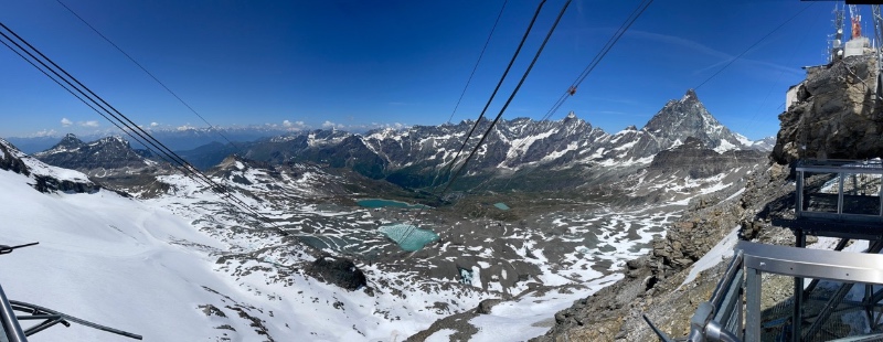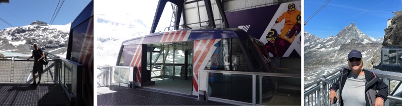 Vi hade kunnat köpa två kabiner till, på den Schweiziska sidan för att komma till sjön där man ser berget spegla sig från en sida, men då hade vi fått betala dubbelt så mycket. (Hade vi istället köpt linbanan från Zermatt hade vi fått betala 150 CHF, för att komma till sjön)