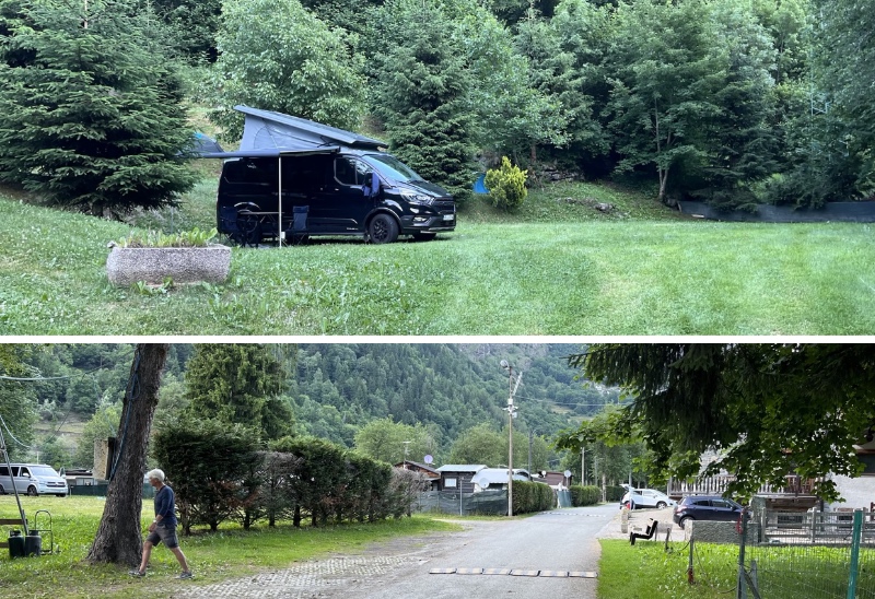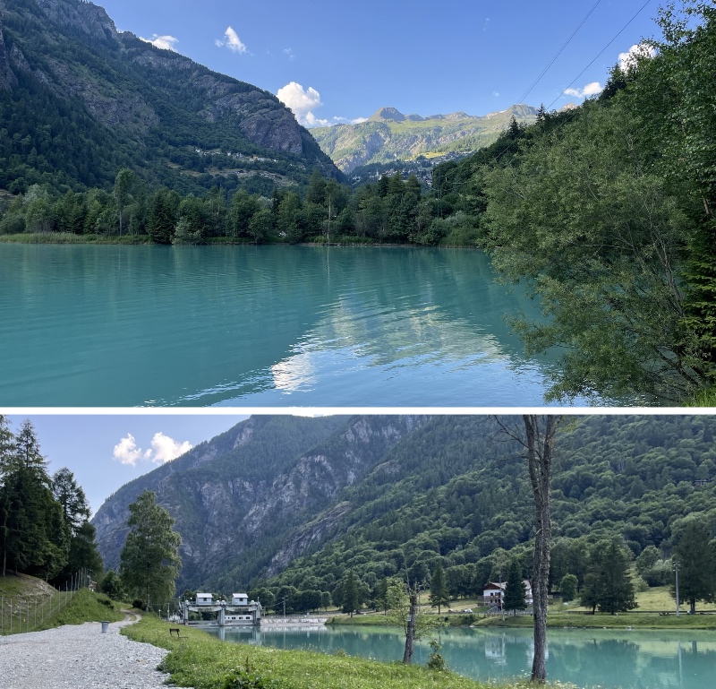 Vi hittade en liten camping inte långt från Cervinia som vi tog in på och fixade middag. Sen gick vi en promenad runt sjön.