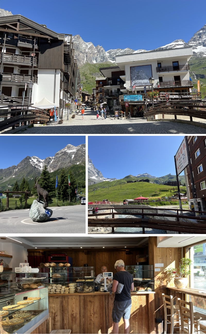 Vi körde till en parkering i utkanten av Cervinia och åt vår frukost med en härlig utsikt över fjället