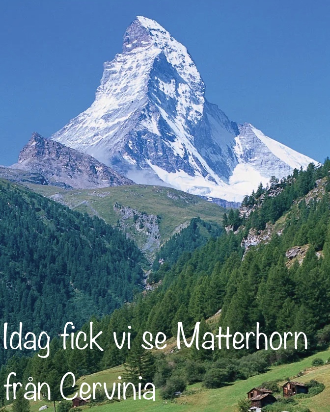 Vi startade ganska tidigt, klockan 8 och hoppade över frukosten. Det tog inte lång tid på den fina vägen förrän vi såg Matterhorn