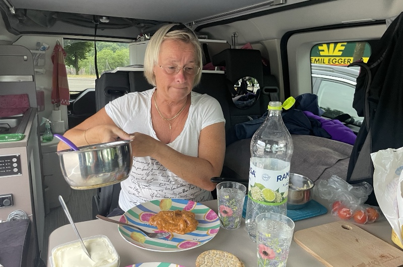Vi var framme runt 21och lagade pasta och en burk kött och korvsås
