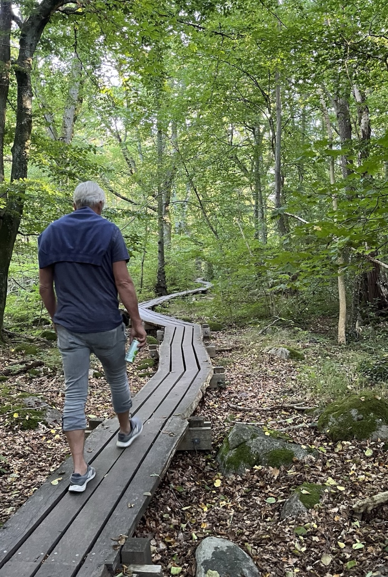 Stigen genom skogen gick bitvis på spångar