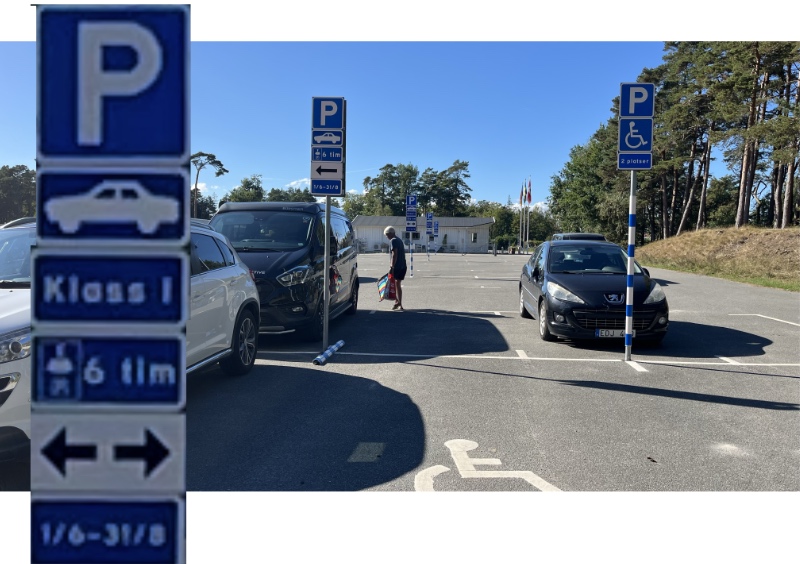 Fika på parkeringen. En rad parkeringar hade de glömt att skylta med Klass 1 och då får vi stå på dem