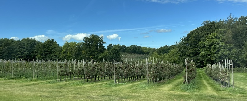 Äppleodlingar överallt, de ser ut som vinodlingar
