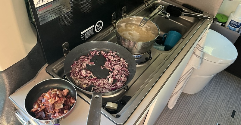 Vi stannade vid Saxtorp och lagade god middag