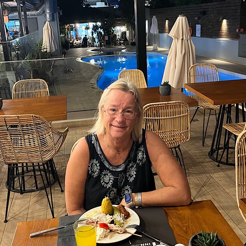 Middag på Indigo Inn. Nöjda med att båda banden sitter kvar på handen. Sen satt vi på vår fina balkong.
