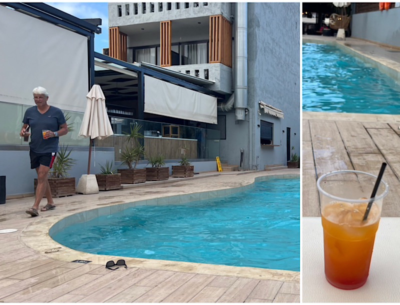 Eftermiddagen tillbringades vid poolen. Solen var mer bakom moln än synlig, men avkoppling med vår sin bok var det.