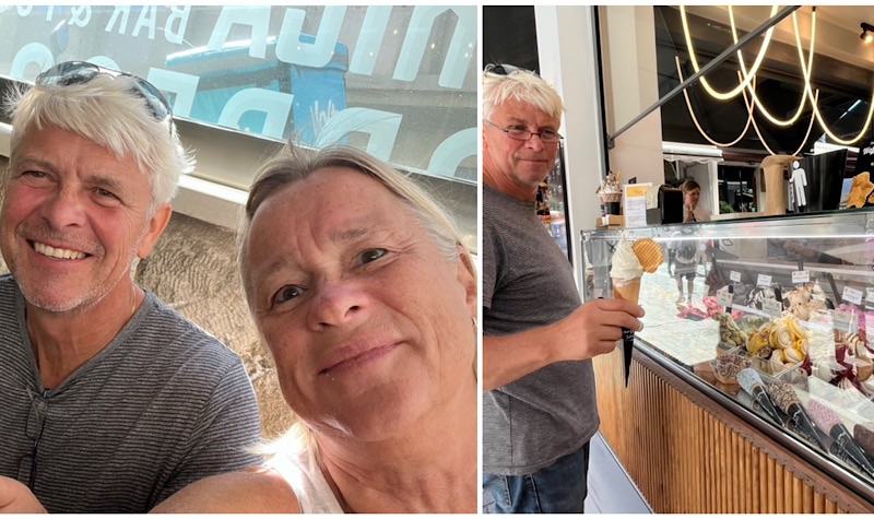 Lite fika och var sin glass och en promenad på gågatan från hamnen, innan vi körde vidare österut