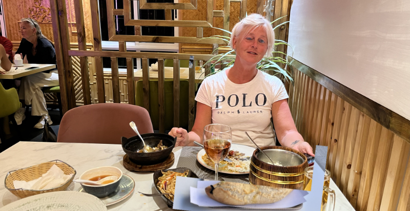 Middagen intogs efter lång väntan på Cass Lu, men det var gott.
