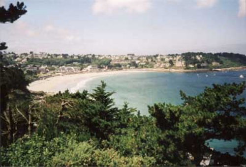 Åkte vidare norrut och fikade på en rastplats mellan regnskurarna. Den lilla staden Dinan som vi passerade på vägen och